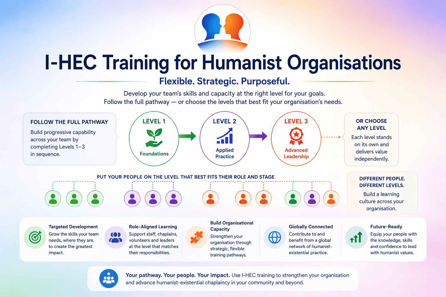 I-HEC operates within a framework aligned with Humanist–Existential Standards developed through the European Humanist Services Network.